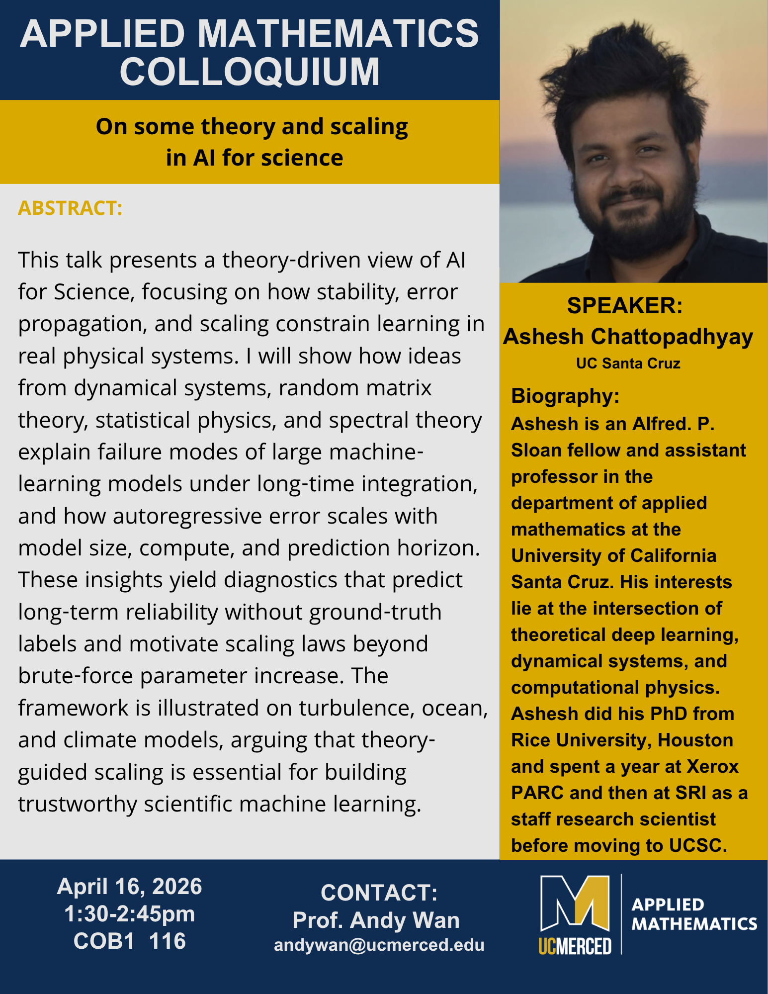 Applied Mathematics Colloquium - Dr. Ashesh Chattopadhyay