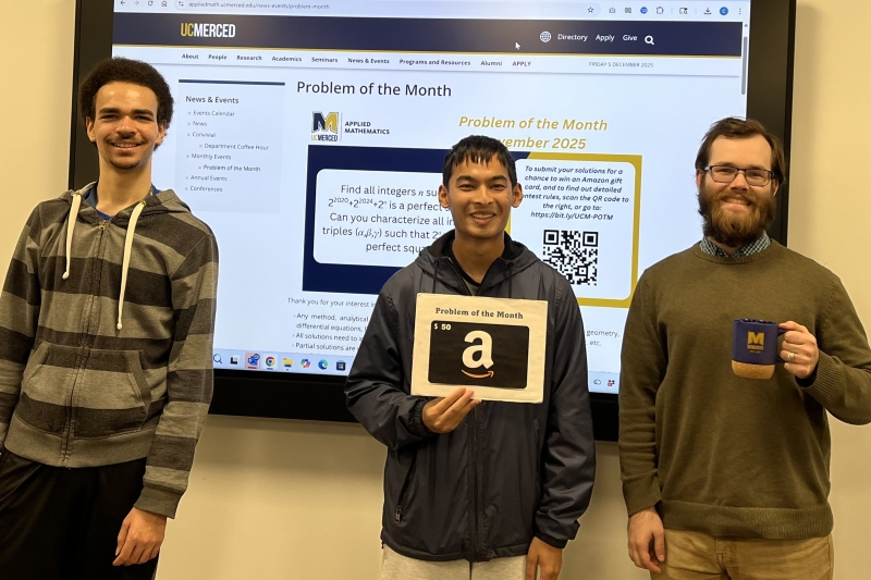 | Feb 2022 | Andrew Lin | Fernando Espinoza-Ortiz, Salaheldin Hegab, Andrew Lin, Ryan Milstrey, Kaixuan Zhang (undergraduate) photo of the winners of Applied Math department mugs |